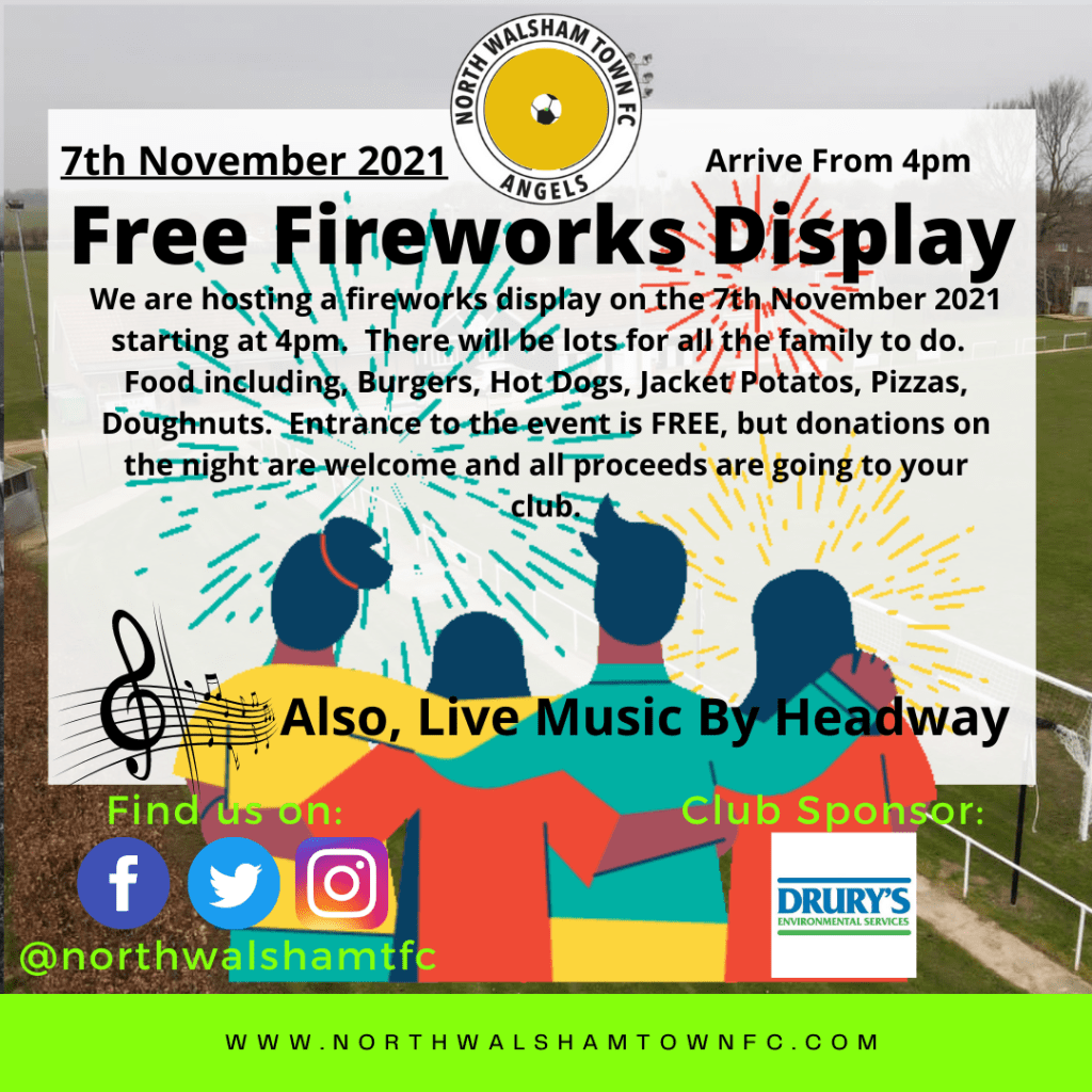 Fireworks Night 7th November 2021 Nov 2, 2021 / NWTFC Admin https://www.justgiving.com/crowdfunding/north-walsham-town-fireworks Related